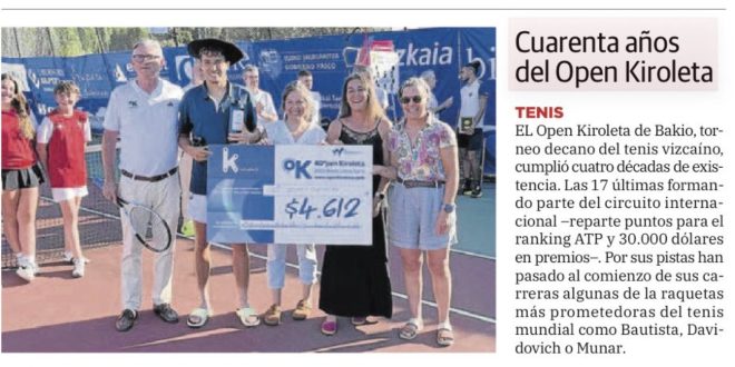 El Open Kiroleta será premiado en próximo 26 de enero en la Gala del Deporte de EL CORREO 2026 con motivo de sus 40 ediciones, las últimas 17 formando parte del calendario de la Federación Internacional de Tenis. Para el torneo es un honor recibir este reconocimiento en las que …